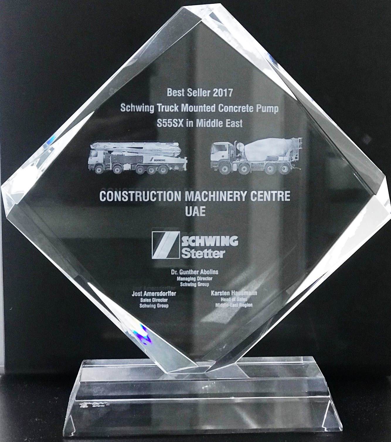 Construction Machinery Centre is awarded as the Best Seller 2017 for Schwing Truck Mounted Concrete Pump S55SX in Middle East Region